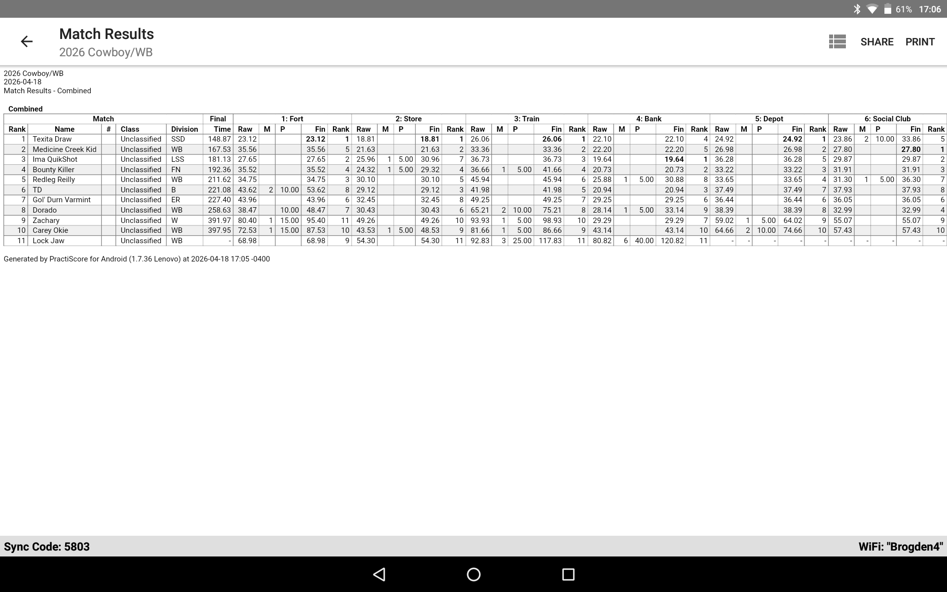 First cowboy/wild bunch of the year and we had 11 posse members shooting. One was a blast from the past as Gol' Durn Varmint showed up to shoot. Great to have him back at the range! We also had Zachary shoot while on leave before deploying to Romania. For the first time in several years, we had a great showing for the wild bunch option, with half the posse shooting with semi-autos. Big difference from the cowboy revolvers! MCK pushed Texita, but the cowboy beat the MCK 1911 for the win. MCK and Varmint were clean. Shoot again in 2 weeks with the All Shotgun Classic only 4 weeks away. Load up!!